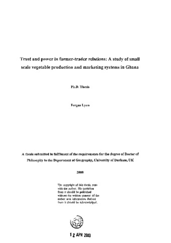 Trust and power in a farmer-trader relations : a study of small scale vegetable production and marketing systems in Ghana.