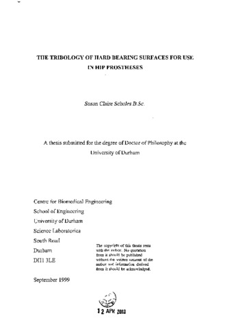 The tribology of hard bearing surfaces for use in hip prostheses.