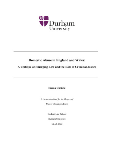 Although Domestic Abuse law has been increasingly prevalent as an issue on the social and political radar, the legal landscape that incrementally composes the law on domestic abuse requires urgent reformulation. The criminal law on domestic abuse remains piecemeal and inadequate, despite recent developments in the modern understanding of domestic abuse, and legal developments that appear to look more to the civil law to help protect victim-survivors. There is an absence of coherence in the criminal law’s current approach. This issue, paired with the practical limitations placed on the law by a struggling criminal justice system, historically inept at recognising the experiences of women, compounds to create a wider picture of domestic abuse law that is failing victim-survivors. This thesis offers an in-depth critical analysis of the role of the criminal law in cases of domestic abuse through a combination of doctrinal and socio-legal research. The approach is novel as there is a growing academic trend towards moving away from the criminal law as a response to domestic abuse, expressed by Michele Burman, who considers some limitations on the impact of creating new law. This thesis develops the argument that a new domestic abuse offence could be beneficial to collate current piecemeal criminal law and expand its applicability and reach. This argument draws upon a broad range of literature, including Jonathan Herring’s book ‘Domestic Abuse and Human Rights’, which explains that, thus far, the law in England and Wales has taken an incremental approach in addressing cases of domestic abuse. The importance of a new criminal law offence of domestic abuse is framed against the need to reconceptualise what is viewed as ‘domestic abuse’. This argument builds upon the work of Evan Stark, who theorises domestic abuse as a liberty crime, to suggest that it should be categorised as both a liberty crime and an assault crime contemporaneously. A feminist perspective, based largely upon the work of Carol Smart and Helena Kennedy, is employed to investigate the role, and failings, of the criminal justice system in dealing with cases of domestic abuse. Further, this thesis draws from Clare McGlynn and Kelly Johnson’s work on ‘Cyberflashing’, highlighting important linkages between the development of technology based harms and domestic abuse. An analysis of the recent Domestic Abuse Act 2021 is then offered to assess the current direction the law is taking concerning domestic abuse and highlight some missed opportunities.
