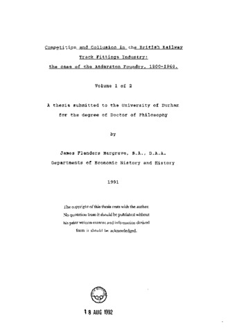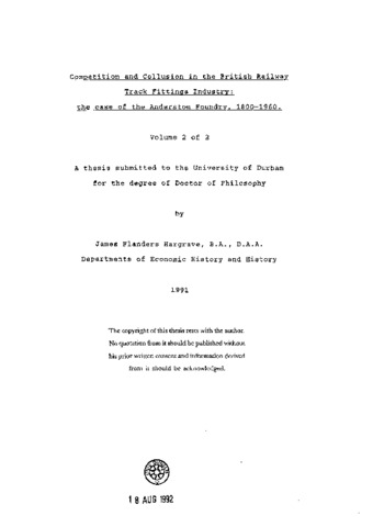 Competition and collusion in the British railway track fittings industry : the case of the Anderston Foundry, 1800-1960.