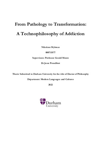 Despite advances in the disciplines of psychology and neuroscience, contemporary addiction theories often provide contradicting perspectives on the phenomenon. The dominant view among the neuroscientific and the medical communities is that addiction is a brain-disease caused by the individual’s chronic exposure to the effects of psychoactive substances. However, critics have challenged the premise that addiction is a disease, while emphasizing the role played by the environment in the genesis of the problem. Although both views have their merits, the persistent dualism ‘individual-environment’ creates a theoretical chasm that often seems unbridgeable. This dissertation seeks to address this problem by introducing a third term in the dualist conceptualisation of addiction. More specifically, I aim to investigate the ways the use and misuse of psychotropic substances and other potentially addictive activities constitute forms of engagement with technical artefacts that mediate the relationship between the individual and the environment. Drawing from Bernard Stiegler’s work, I argue that the evolution of our species was influenced by the use of substances and other potentially addictive behaviours that transformed our mind and body. Through a close reading of Canguilhem’s The Normal and the Pathological (1966) and Stiegler’s symptomatology of contemporary societies, I conceptualise addiction as a case of pathological automation of the psychical apparatus, which is produced by the individual’s engagement with the psychotropic properties of technical artefacts in the context of environmental pressures that make addiction a dominant mode of relating to the world. I then proceed to explore questions of recovery by examining the relationship between autonomy and agency in addiction, the practices of Alcoholics Anonymous as a form of automation of the mind, and the potential of artistic endeavours as technologies of individual and collective recovery. The study concludes with a consideration of the promises and the limitations of a technophilosophy of addiction.