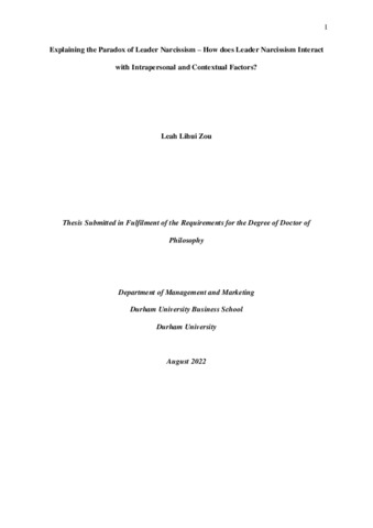 Explaining the Paradox of Leader Narcissism – How does Leader Narcissism Interact with Intrapersonal and Contextual Factors?