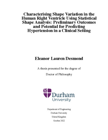 Characterising Shape Variation in the Human Right Ventricle Using Statistical Shape Analysis: Preliminary Outcomes and Potential for Predicting Hypertension in a Clinical Setting