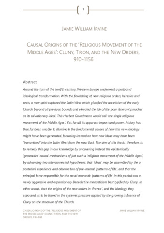 CAUSAL ORIGINS OF THE ‘RELIGIOUS MOVEMENT OF THE MIDDLE AGES': CLUNY, TIRON, AND THE NEW ORDERS, 910-1156