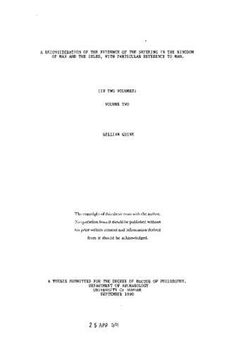A reconsideration of the evidence of the shieling in the Kingdom of Man and the Isles, with particular reference to Man.