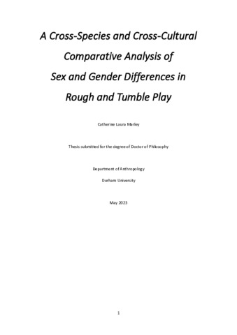 | Uncontrolled Keywords | gender differences, sex differences, rough and tumble play, social play, biocultural, life history, behavioural ecology, cultural evolution |