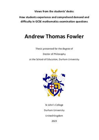 This study investigates students’ understanding and experience of factors that create “demand” and “difficulty” in GCSE mathematics examination questions. Around 600,000 students in England take GCSE examinations each year. The results of these high-stakes assessments affect students’ future prospects, as well as schools’ status and recruitment. The performance of the examination system is, therefore, highly significant, but the effective working of its assessment methods lacks systematic academic scrutiny. Examiners manipulate factors relating to the “demand” (i.e. cognitive load) of examination questions, and these questions are experienced at different levels of “difficulty” by students. If the link between “demand” and “difficulty” cannot accurately be predicted by examiners, this poses a threat to the validity of inferences made from examination results. Existent research into demand and difficulty in examination questions has predominantly focused on the work of examiners: students’ voices have not been heard. In this study, questionnaires and focus group interviews gathered the views of 224 secondary school GCSE mathematics students in 5 comprehensive schools in North East England. Reflexive thematic analysis (Braun and Clarke, 2022) was used to investigate students’ responses and their inferences in relation to learning theories including cognitive load theory and taxonomies of learning. The voices of students in this study reveal insights into question demands and difficulty. Students discuss recall, reasoning and application of knowledge. Many students associate question length with difficulty. Question clarity inspires student confidence. Context in a question introduces an unreliable element, motivating some and confusing others. Students’ insights have implications for examiners, teachers, and students. The thesis concludes that there are compelling reasons, in terms of teaching and learning, improving question design, validity, and public confidence in the examination system, to listen to students’ views.