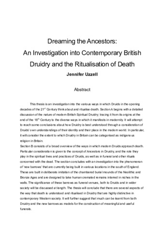 Dreaming the Ancestors: An Investigation into Contemporary British Druidry and the Ritualisation of Death.