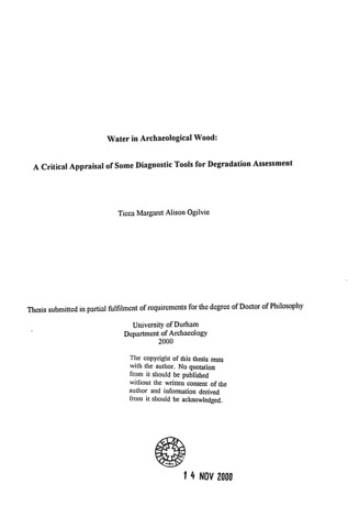 Water in archaeological wood : a critical appraisal of some diagnostic tools for degradation assessment.