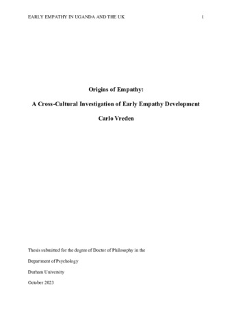 Origins of Empathy: A Cross-Cultural Investigation of Early Empathy Development