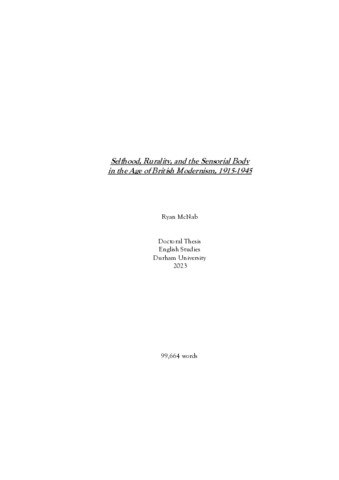 Selfhood, Rurality, and the Sensorial Body in the Age of British Modernism, 1915-1945