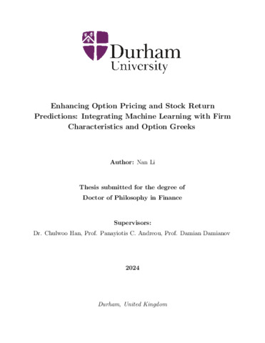 | Uncontrolled Keywords | Machine learning; Option pricing; Stock extreme return; Firm characteristics; Option Greeks; Pandemic analysis; Portfolio management. |