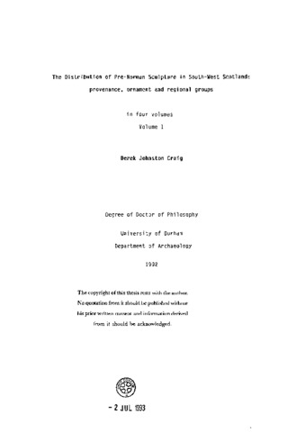 The distribution of pre-Norman sculpture in South-West Scotland : provenance, ornament and regional groups.