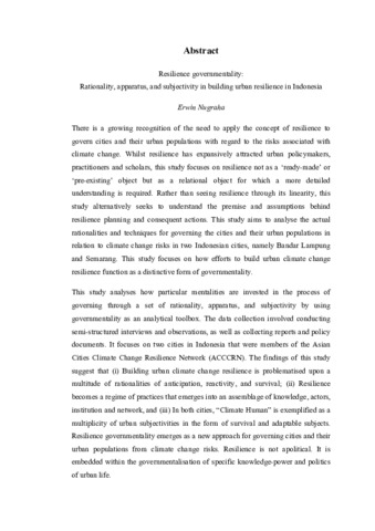 There is a growing recognition of the need to apply the concept of resilience to govern cities and their urban populations with regard to the risks associated with climate change. Whilst resilience has expansively attracted urban policymakers, practitioners and scholars, this study focuses on resilience not as a ‘ready-made’ or ‘pre-existing’ object but as a relational object for which a more detailed understanding is required. Rather than seeing resilience through its linearity, this study alternatively seeks to understand the premise and assumptions behind resilience planning and consequent actions. This study aims to analyse the actual rationalities and techniques for governing the cities and their urban populations in relation to climate change risks in two Indonesian cities, namely Bandar Lampung and Semarang. This study focuses on how efforts to build urban climate change resilience function as a distinctive form of governmentality. This study analyses how particular mentalities are invested in the process of governing through a set of rationality, apparatus, and subjectivity by using governmentality as an analytical toolbox. The data collection involved conducting semi-structured interviews and observations, as well as collecting reports and policy documents. It focuses on two cities in Indonesia that were members of the Asian Cities Climate Change Resilience Network (ACCCRN). The findings of this study suggest that (i) Building urban climate change resilience is problematised upon a multitude of rationalities of anticipation, reactivity, and survival; (ii) Resilience becomes a regime of practices that emerges into an assemblage of knowledge, actors, institution and network, and (iii) In both cities, “Climate Human” is exemplified as a multiplicity of urban subjectivities in the form of survival and adaptable subjects. Resilience governmentality emerges as a new approach for governing cities and their urban populations from climate change risks. Resilience is not apolitical. It is embedded within the governmentalisation of specific knowledge-power and politics of urban life.