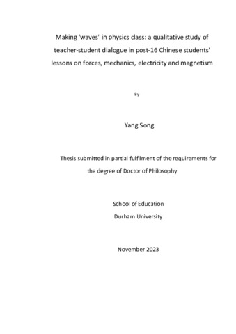 Making 'waves' in physics class: a qualitative study of teacher-student dialogue in post-16 Chinese students' lessons on forces, mechanics, electricity and magnetism