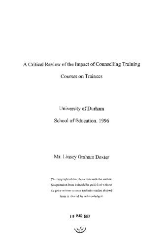 A critical review of the impact of counselling training : courses on trainees.