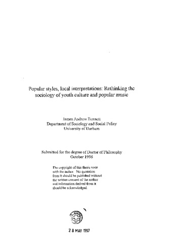 Popular styles, local interpretations : rethinking the sociology of youth culture and popular music.