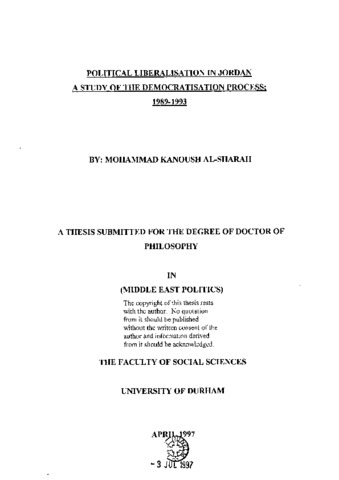 Political liberalisation in Jordan : a study of the democratisation process; 1989-1993.