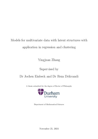 | Uncontrolled Keywords | Random effect modelling; Multivariate data analysis; Clustering |