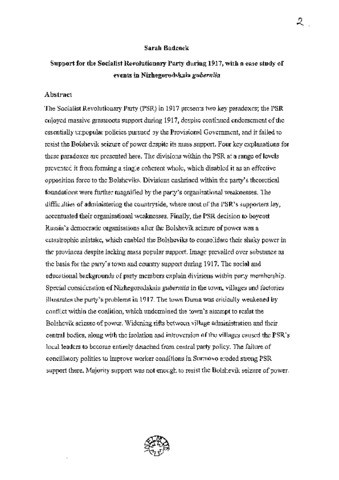 Support for the Socialist Revolutionary Party during 1917, with a case study of events in Nizhegorodskaia guberniia.