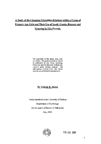 A study of the changing friendship relations within a group of primary age girls and their use of insult, gossip, rumour and grassing in this process.