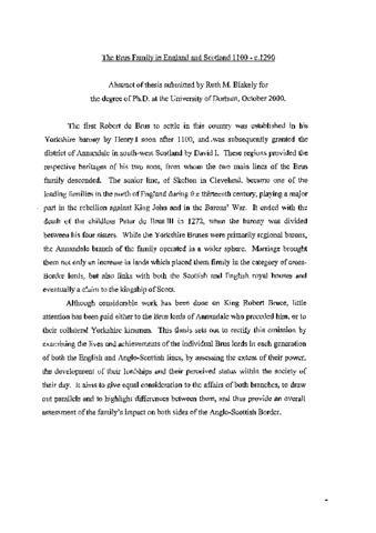 The Brus family in England and Scotland 1100-c.1290.