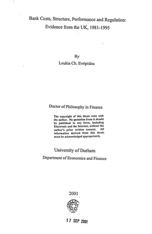 Bank costs, structure, performance and regulation : evidence from the UK, 1981-1995.