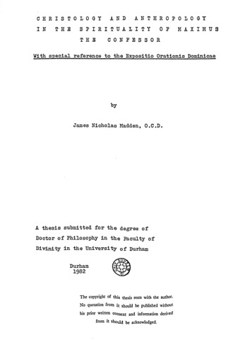 Christology and anthropology in the spirituality of Maximus the Confessor : With special reference to the Expositio Orationis Dominicae.