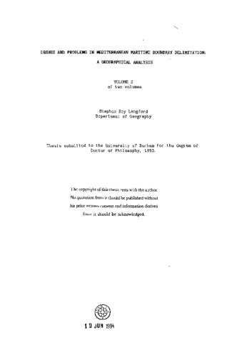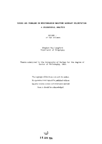 Issues and problems in Mediterranean maritime boundary delimitation : a geographical analysis.