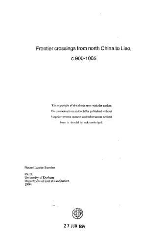 Frontier crossings from north China to Liao, c.900-1005.