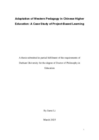 Adaptation of Western Pedagogy in Chinese Higher Education: A Case Study of Project-Based Learning