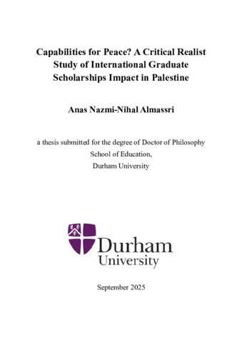 Capabilities for Peace? A Critical Realist Study of International Graduate Scholarships Impact in Palestine