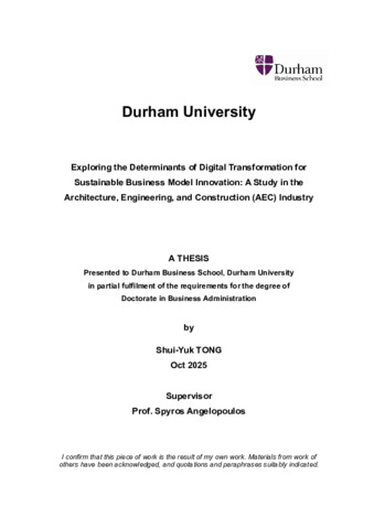 | Uncontrolled Keywords | Digital Transformation, Sustainable Business Model Innovation, Triple Bottom Line, AEC Industry, Entrepreneurial Orientation, Sustainability Orientation, Digital Orientation |