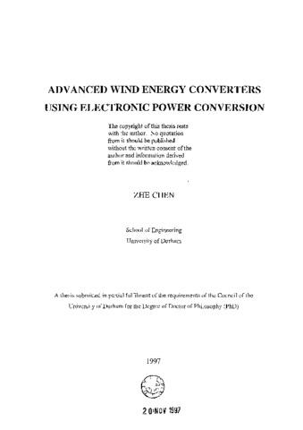 | Uncontrolled Keywords | Wind power Electromechnical devices Electronic apparatus and appliances Electric power transmission |