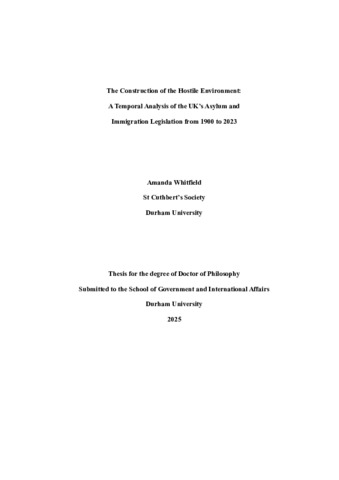 The Construction of the Hostile Environment: A Temporal Analysis of the UK’s Asylum and Immigration Legislation from 1900 to 2023