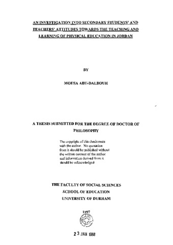 An investigation into secondary students' and teachers' attitudes towards the teaching and learning of physical education in Jordan.