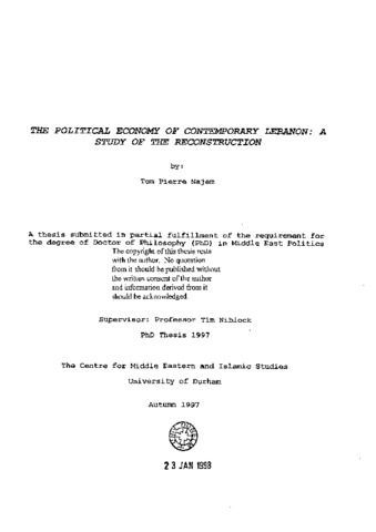 Political economy of contemporary Lebanon : a study of the reconstruction.