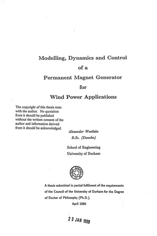 Modelling, dynamics and control of a permanent magnet generator for wind power applications.