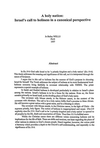 A holy nation : Israel's call to holiness in a canonical perspective.