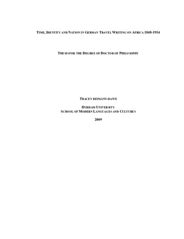 TIME, IDENTITY AND NATION IN GERMAN TRAVEL WRITING ON AFRICA 1848-1914