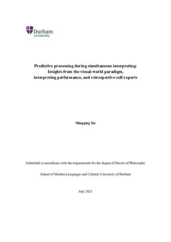 Together, these findings highlight predictive processing as a dynamic, individualised, and strategically modulated component of SI, shaped by both automatic cognitive mechanisms and metacognitive control. Implications are discussed for interpreter training and for future research into cognitive adaptation in high-demand language tasks.