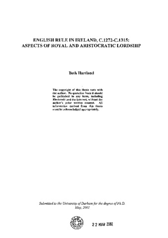 English rule in Ireland, c.1272-c.1315 : aspects of royal and aristocratic lordship.