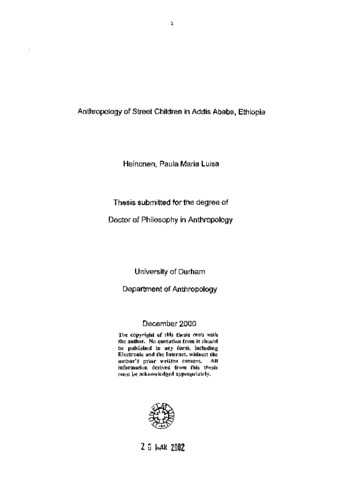 Anthropology of street children in Addis Ababa, Ethiopia.