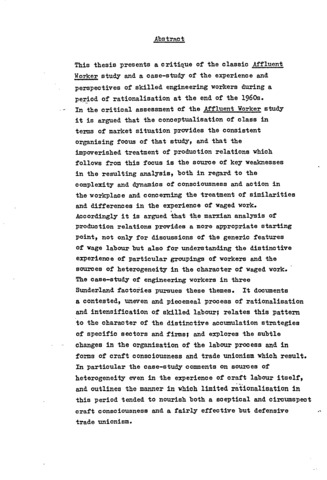 Affluence, rationalisation and the skilled worker : A critique of the affluent worker paradigm and a local case study.
