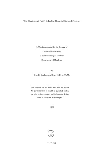 'The obediance of faith' : A Pauline phrase in historical context.