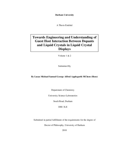 Towards Engineering and Understanding of Guest Host Interaction Between Dopants and Liquid Crystals in Liquid Crystal Displays