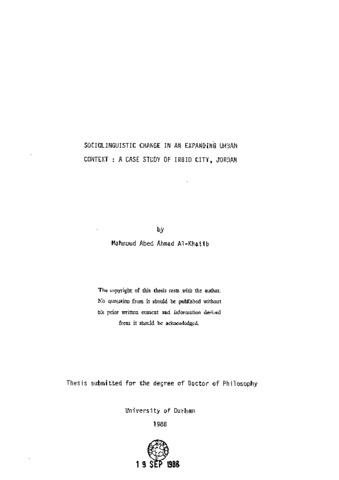 Sociolinguistic change in an expanding urban context : A case study of Irbid City, Jordan.