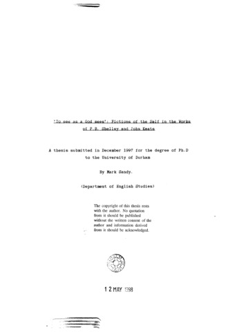 To see as a God sees : fictions of self in the works of P.B. Shelley and John Keats.