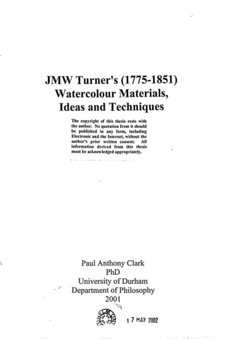 JMW Turner's (1775-1851) watercolour materials, ideas and techniques.
