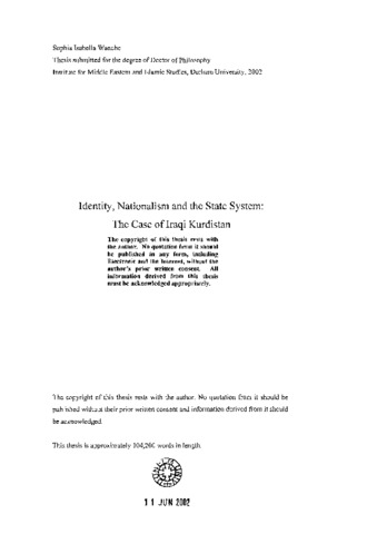 Identity, nationalism and the state system : the case of Iraqi Kurdistan.